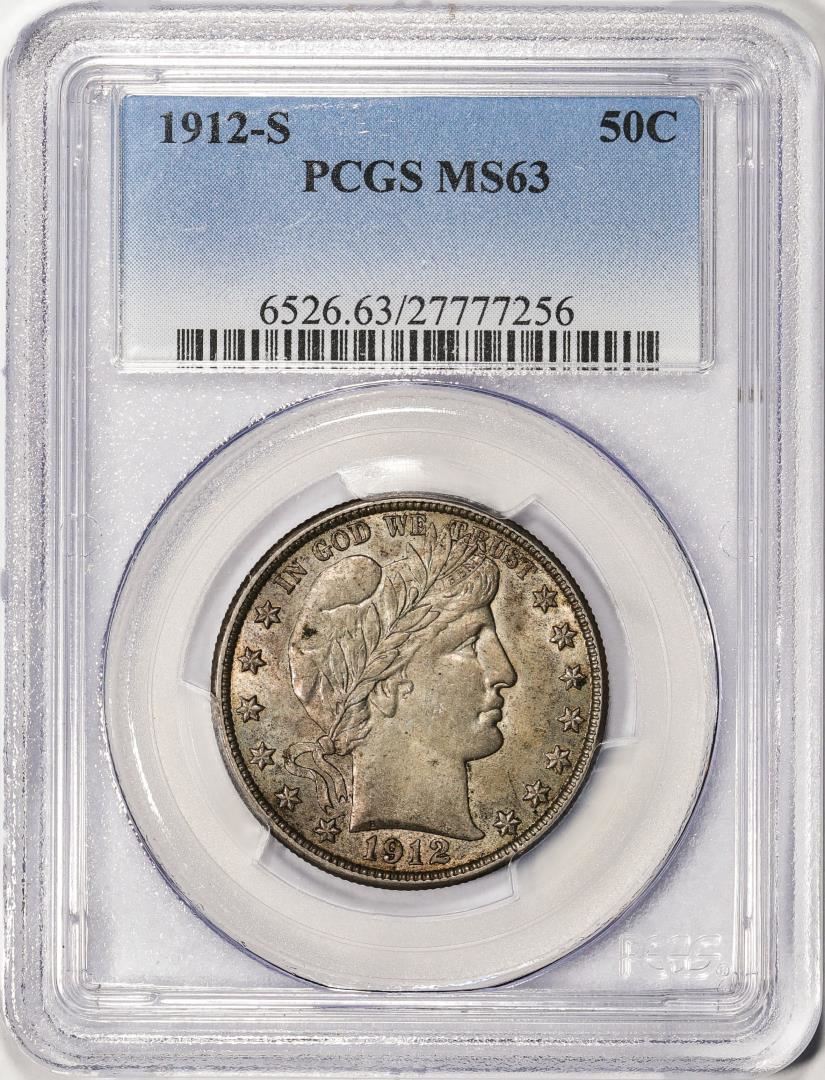 One 1912-S Barber Quarter Coin PCGS MS63. PCGS Graded.