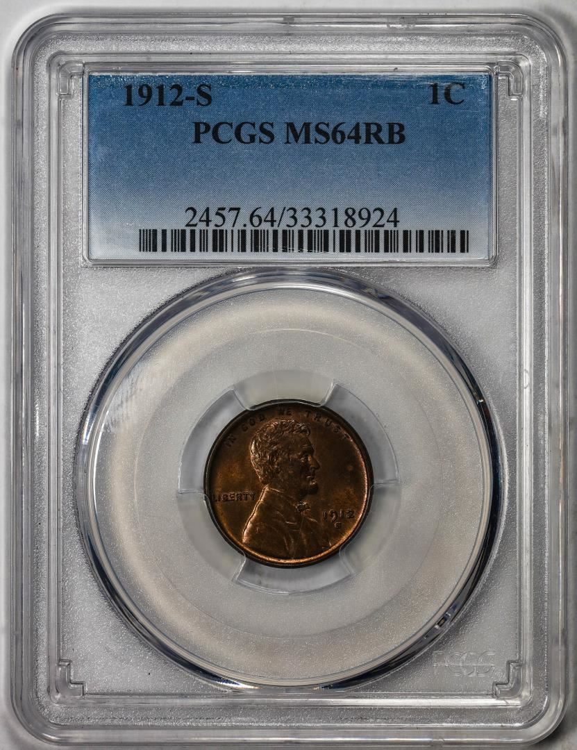 One 1912-S Lincoln Wheat Cent Coin PCGS MS64RB. PCGS Graded.