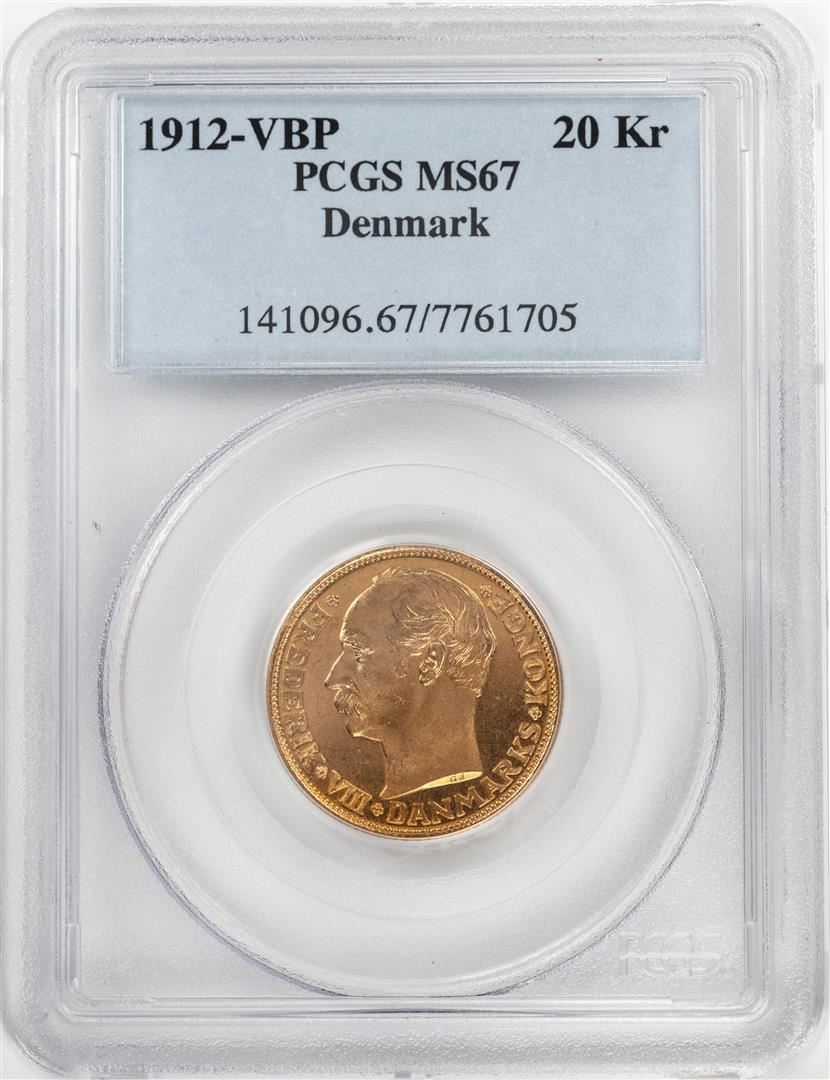 One 1912-VBP Denmark 20 Kroners Gold Coin PCGS MS67. PCGS Graded.