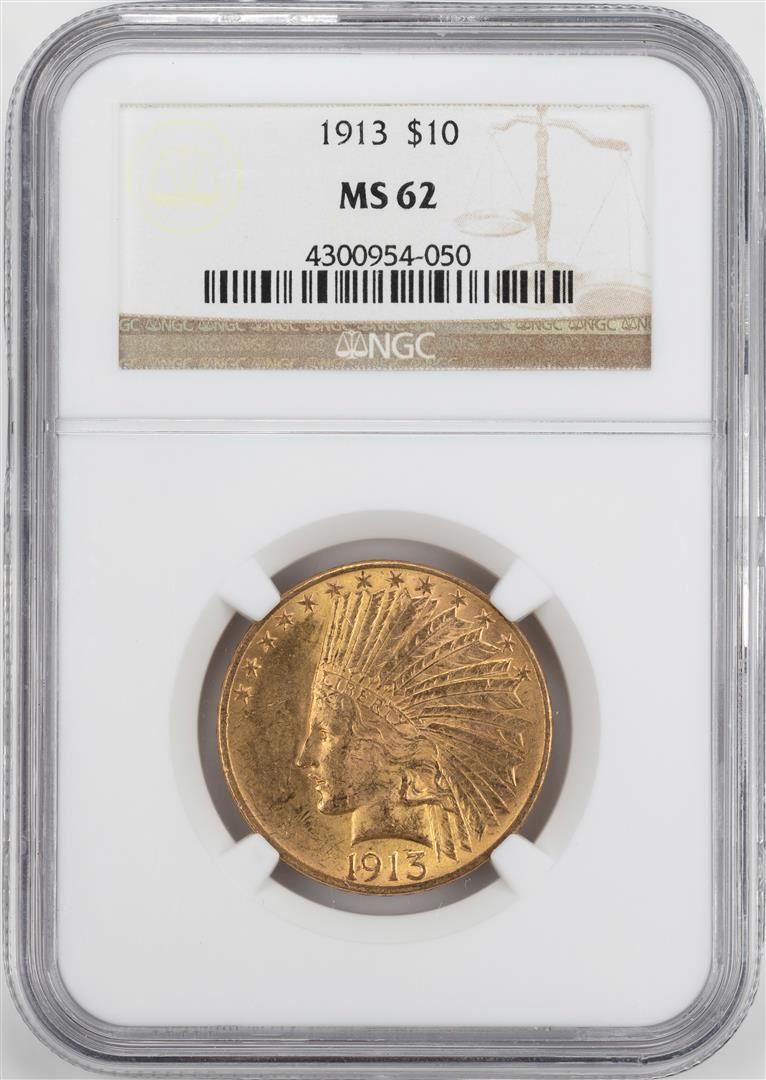 One 1913 $10 Indian Head Eagle Gold Coin NGC MS62. NGC Certified.