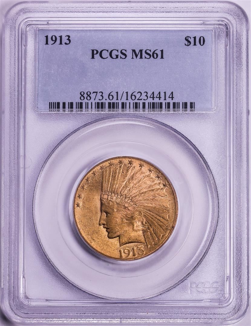 One 1913 $10 Indian Head Eagle Gold Coin PCGS MS61. PCGS Graded.
