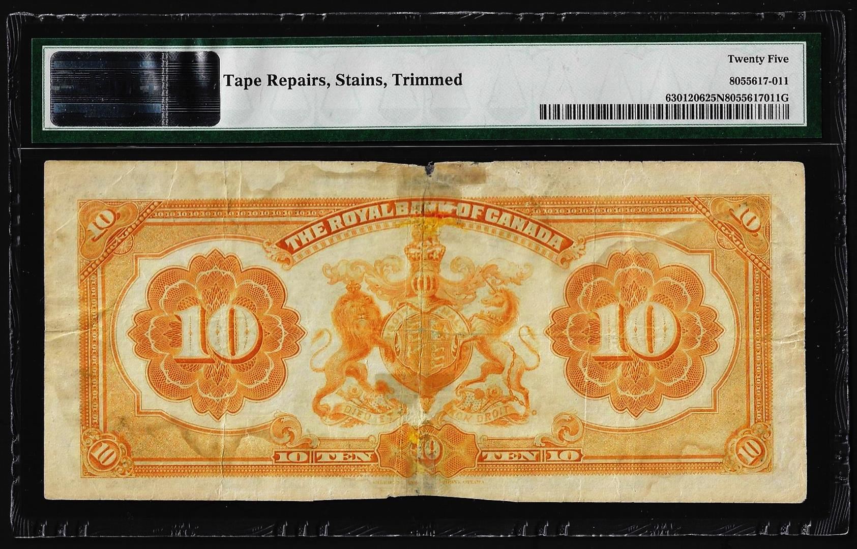One 1913 $10 Royal Bank of Canada Montreal Note PMG Very Fine 25 Net. PMG Certified.
