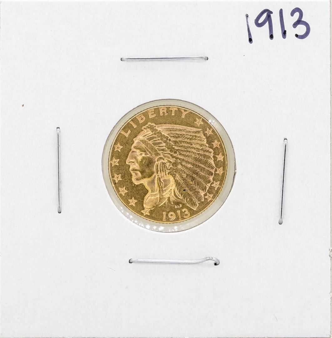 One 1913 $2 1/2 Indian Head Quarter Eagle Coin.