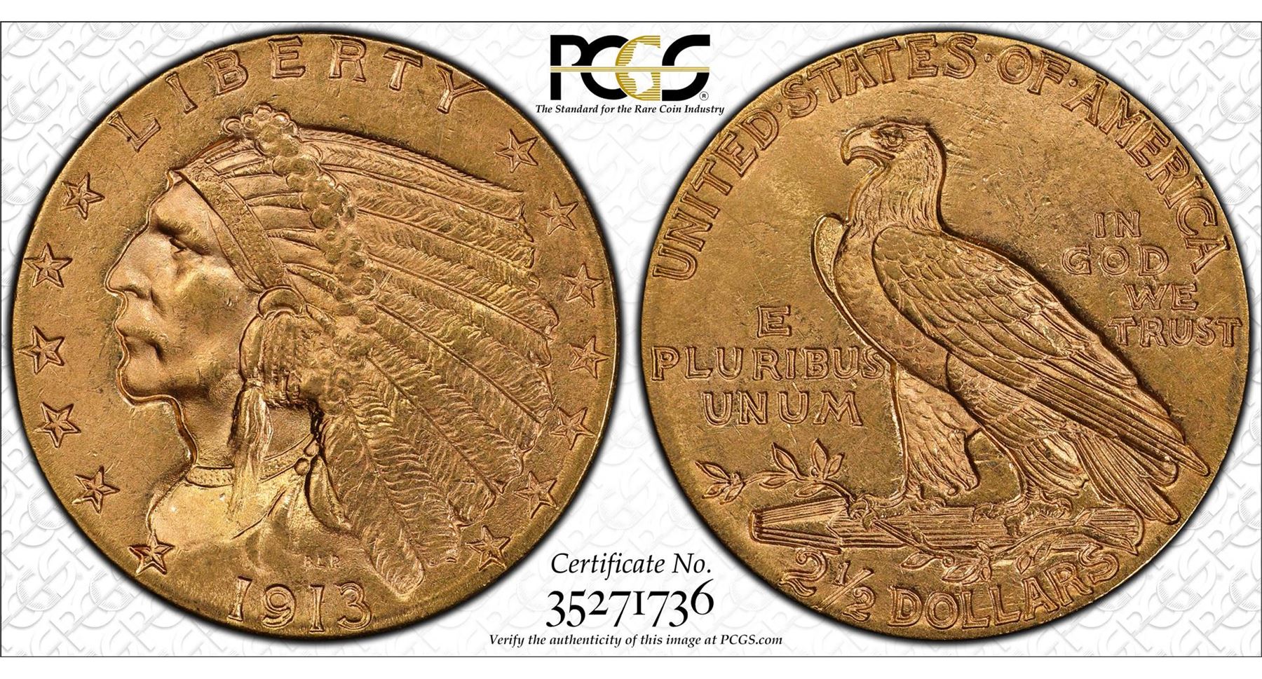 1913 $2 1/2 Indian Head Quarter Eagle Gold Coin PCGS MS63