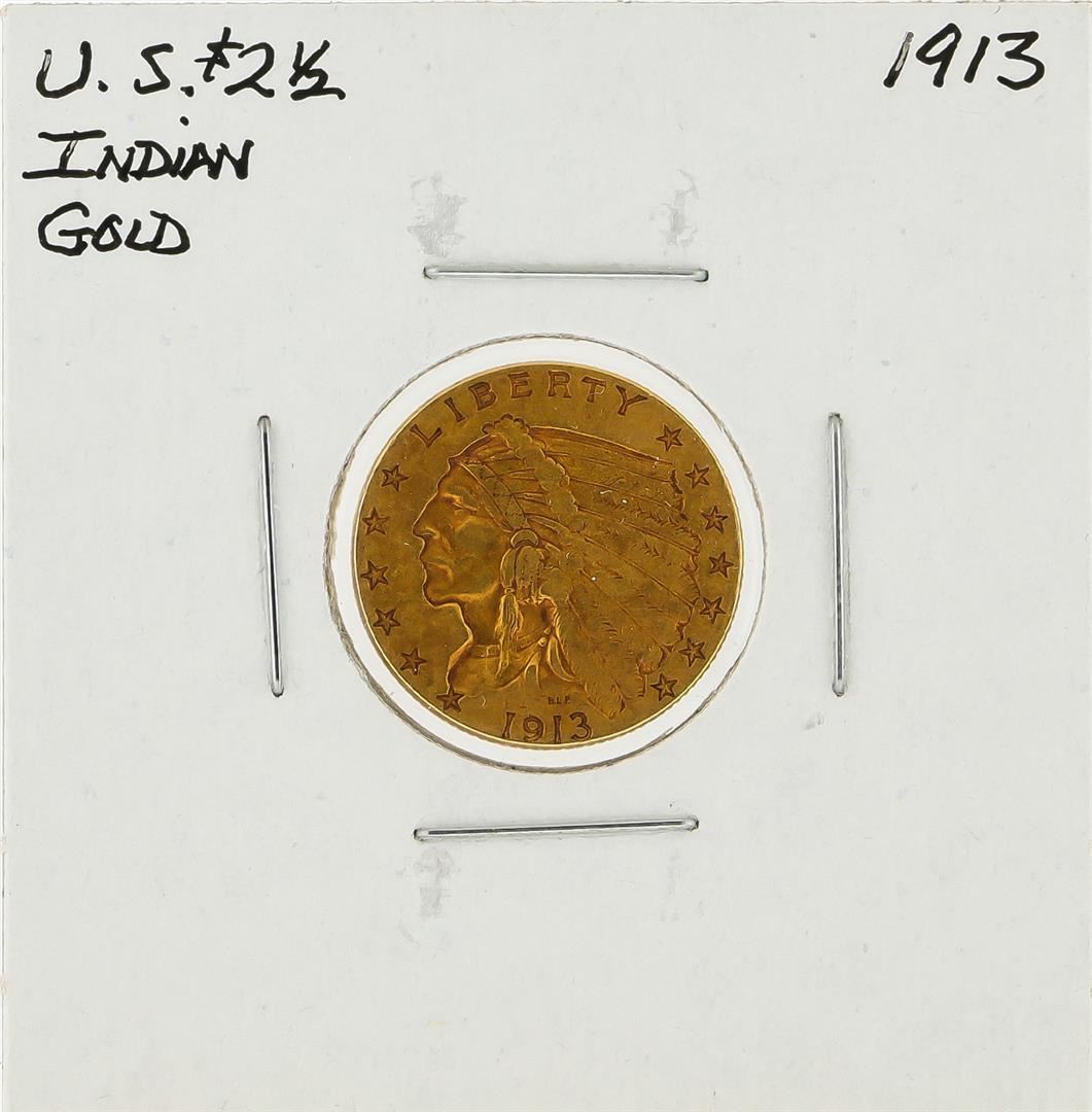 One 1913 $2 1/2 Indian Head Quarter Eagle Gold Coin.
