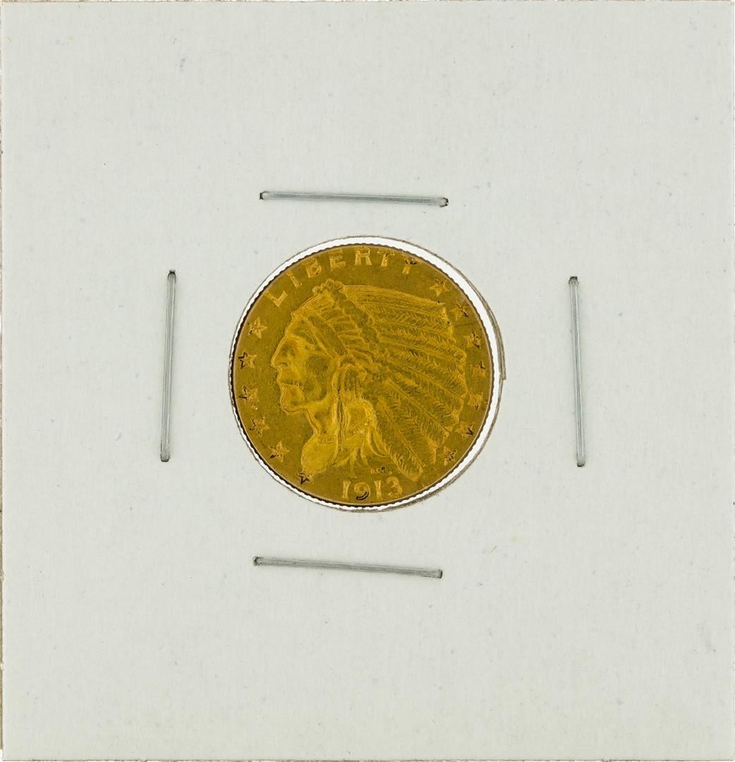 One 1913 $2 1/2 Indian Head Quarter Eagle Gold Coin.