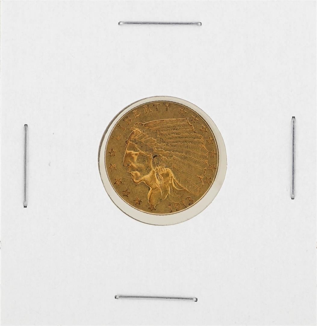 One 1913 $2 1/2 Indian Head Quarter Eagle Gold Coin.