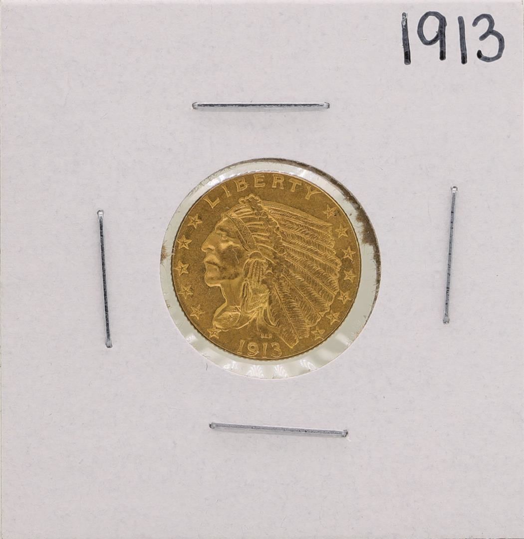 One 1913 $2 1/2 Indian Head Quarter Eagle Gold Coin.
