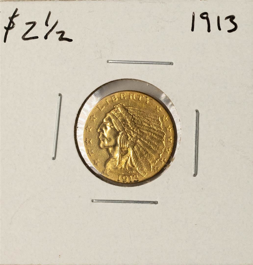 One 1913 $2 1/2 Indian Head Quarter Eagle Gold Coin.