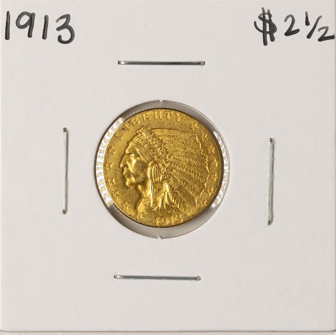 One 1913 $2 1/2 Indian Head Quarter Eagle Gold Coin.