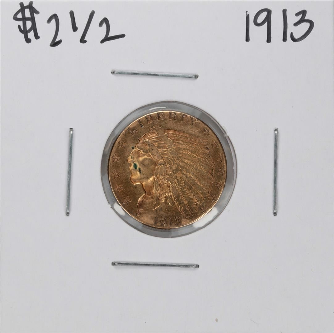 One 1913 $2 1/2 Indian Head Quarter Eagle Gold Coin.
