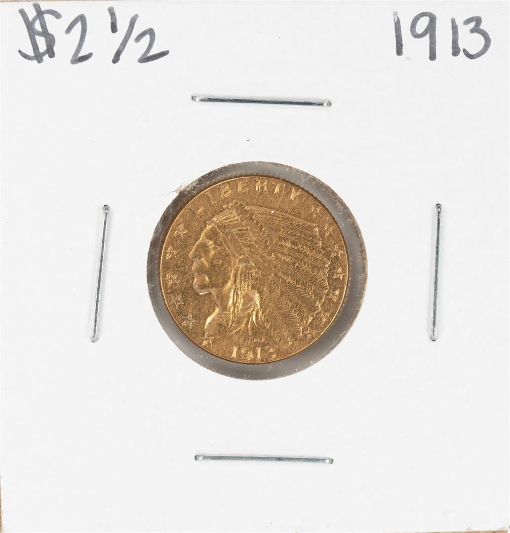 One 1913 $2 1/2 Indian Head Quarter Eagle Gold Coin.