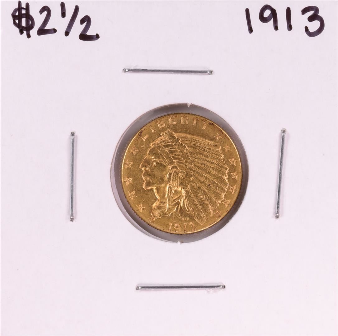 One 1913 $2 1/2 Indian Head Quarter Eagle Gold Coin.