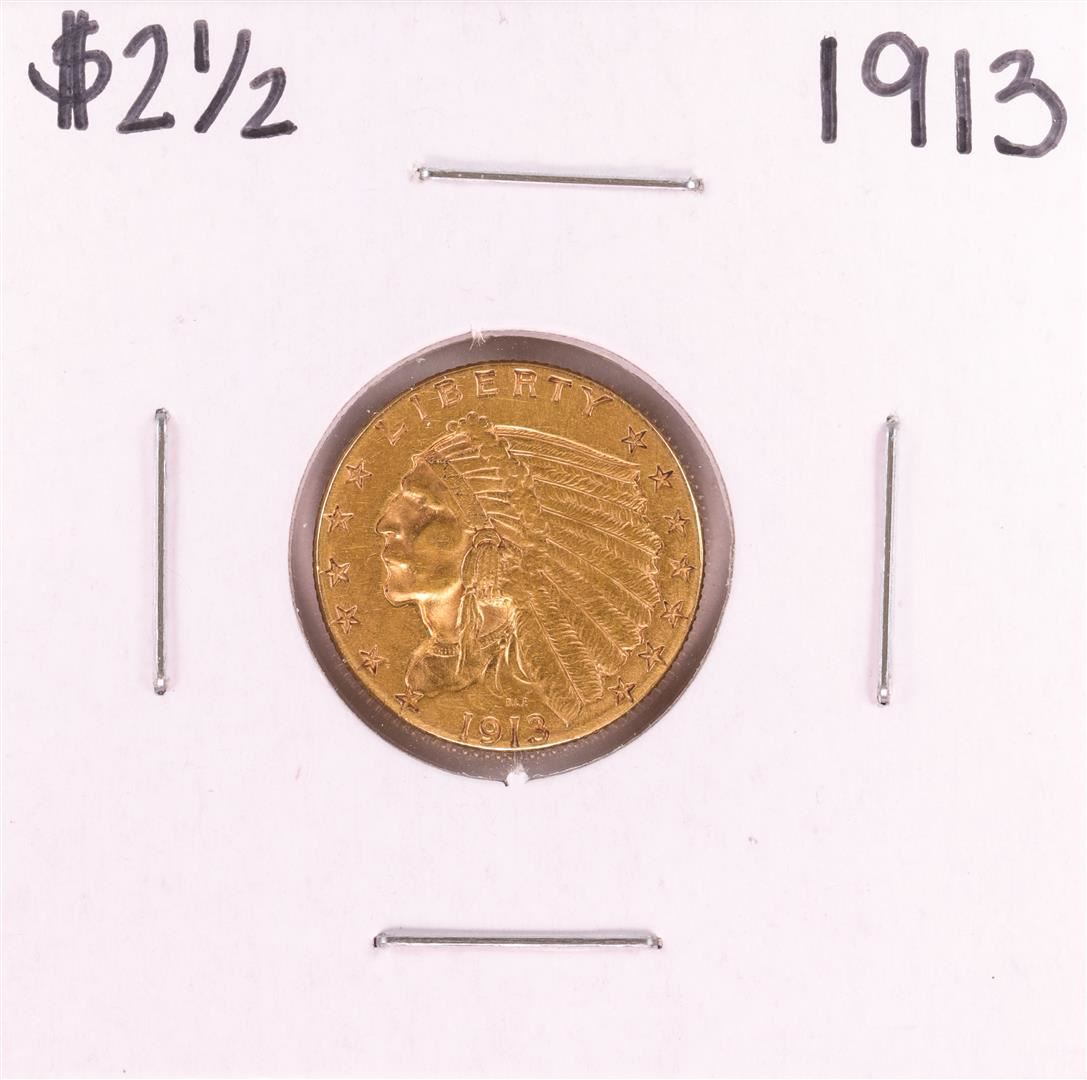 One 1913 $2 1/2 Indian Head Quarter Eagle Gold Coin.