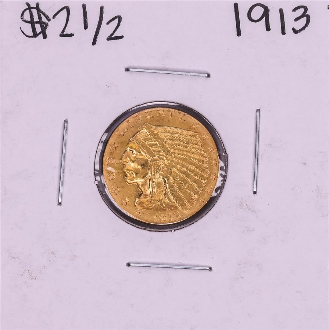 One 1913 $2 1/2 Indian Head Quarter Eagle Gold Coin.