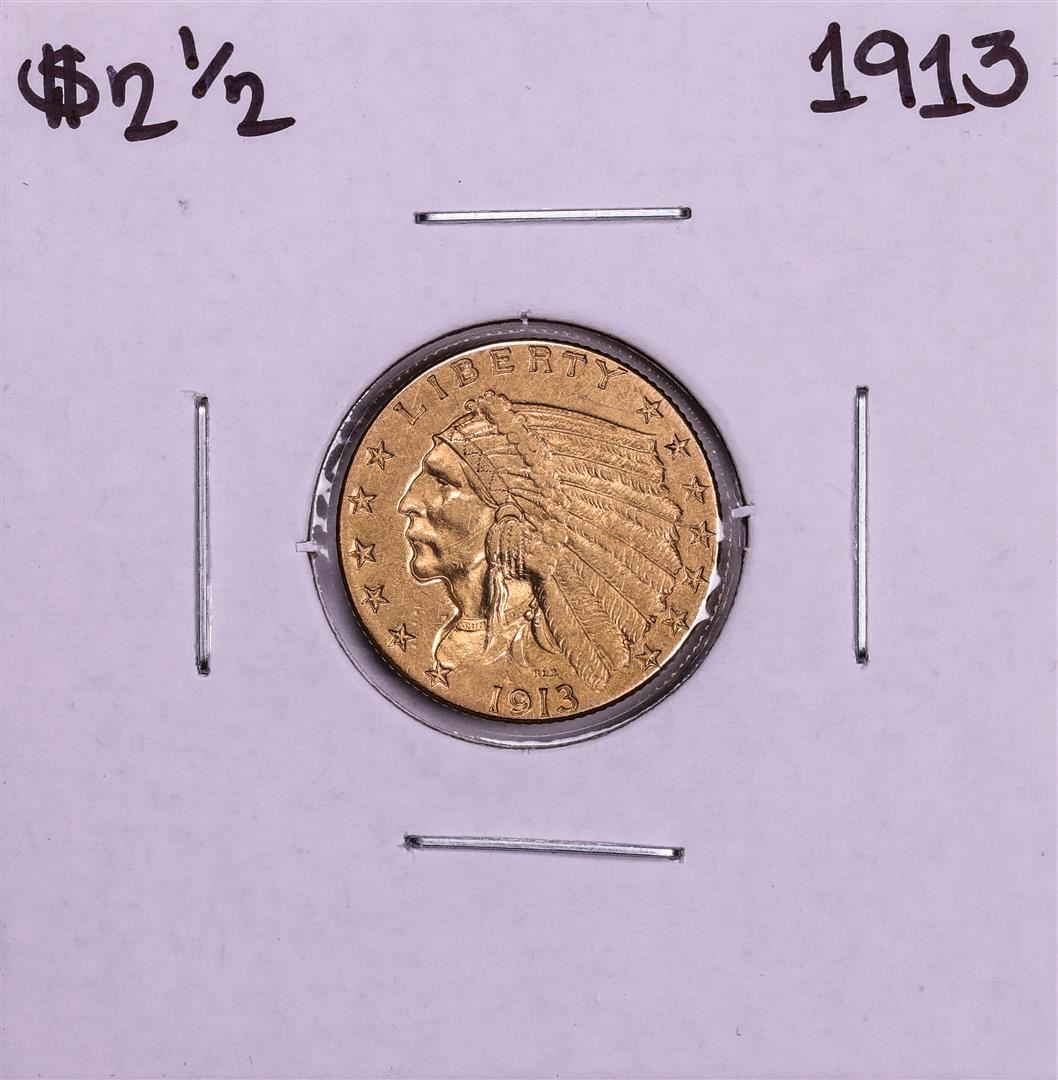 One 1913 $2 1/2 Indian Head Quarter Eagle Gold Coin.