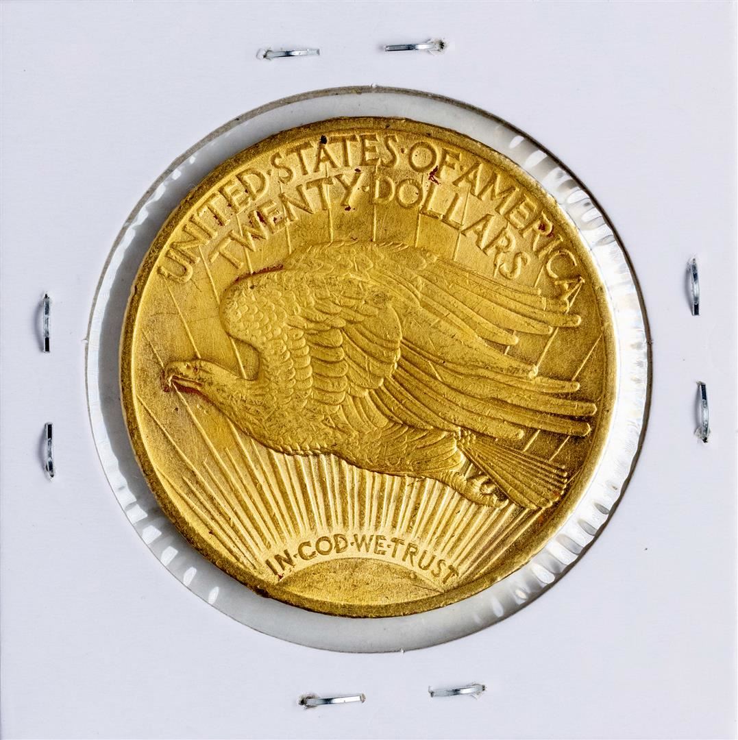 One 1913 $20 St. Gaudens Double Eagle Gold Coin.