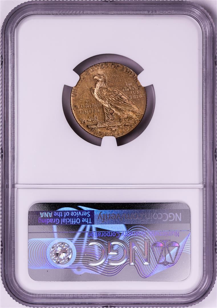 One 1913 $5 Indian Head Half Eagle Gold Coin NGC AU58. NGC Certified.