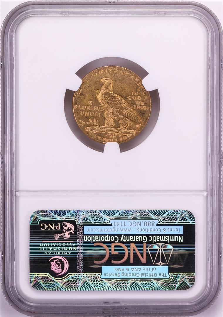 One 1913 $5 Indian Head Half Eagle Gold Coin NGC MS62. NGC Certified.