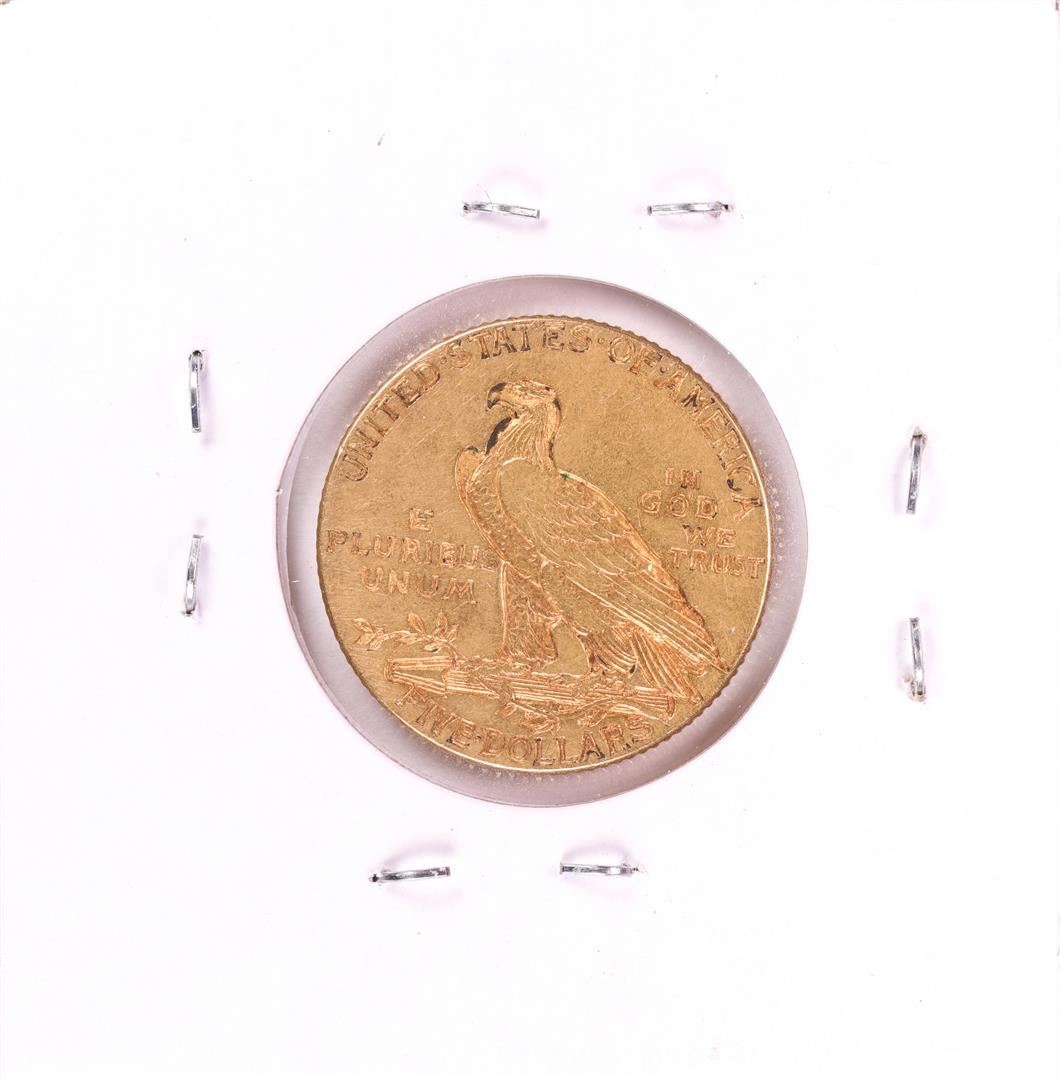 One 1913 $5 Indian Head Half Eagle Gold Coin.