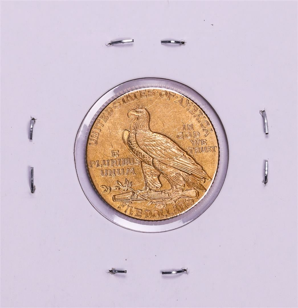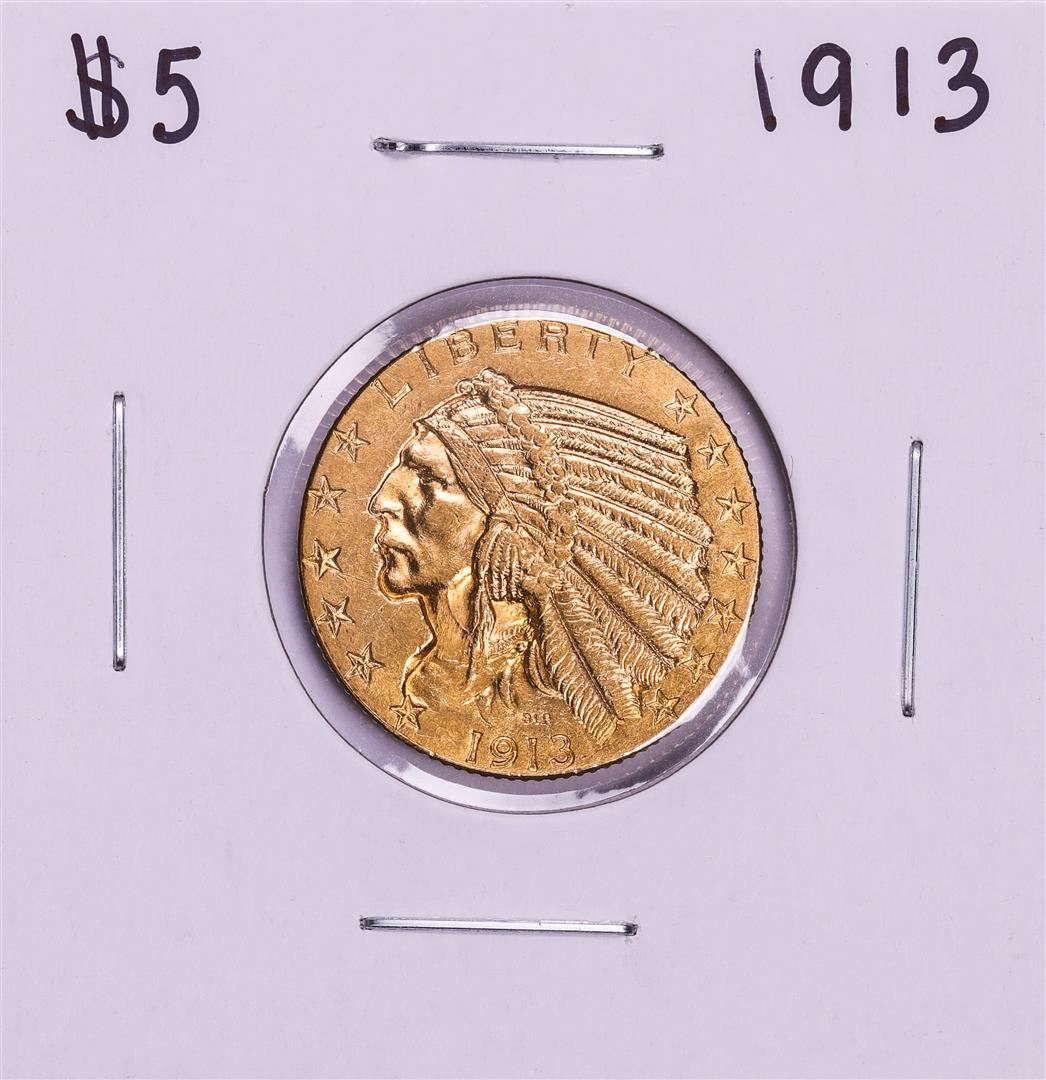 One 1913 $5 Indian Head Half Eagle Gold Coin.