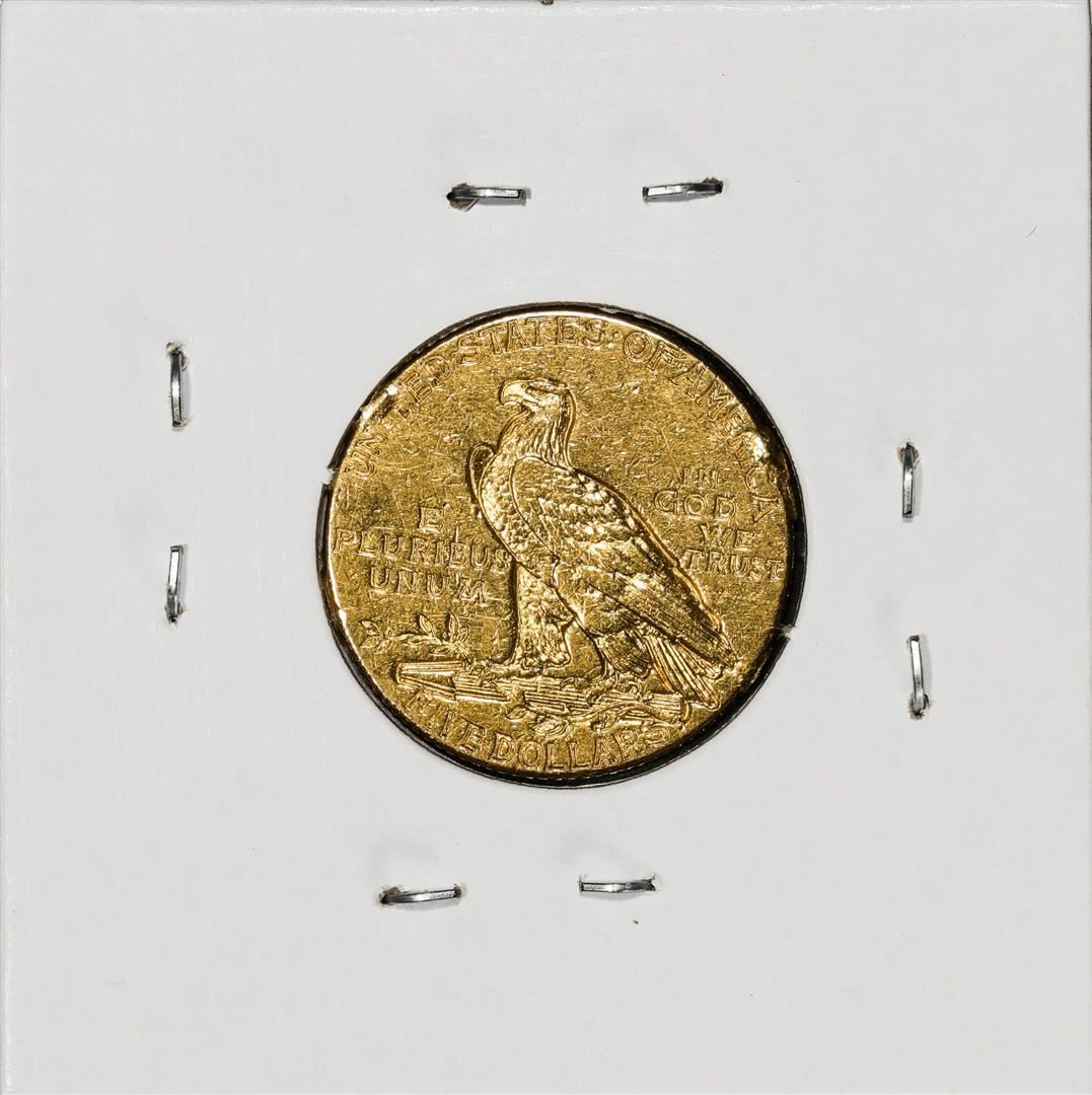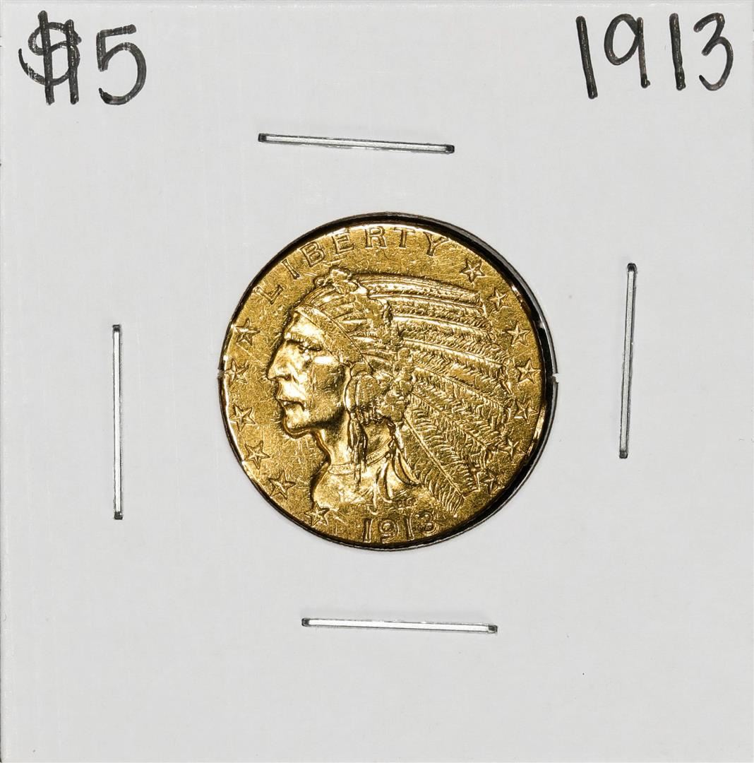 One 1913 $5 Indian Head Half Eagle Gold Coin.
