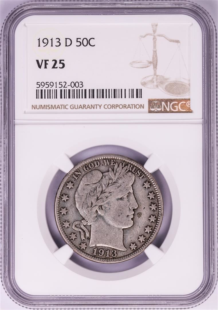 1913-D Barber Half Dollar Coin NGC VF25