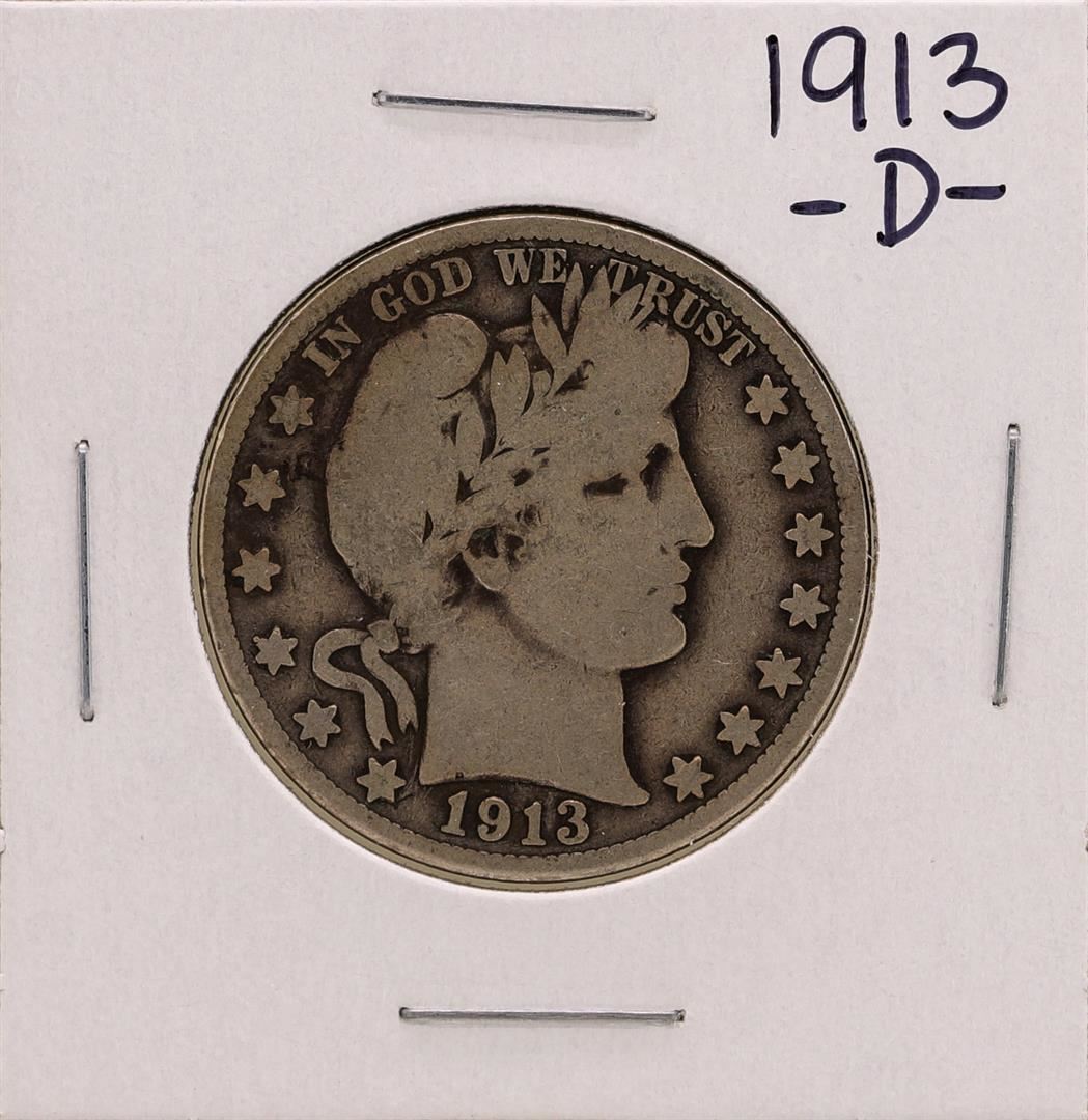 One 1913-D Barber Half Dollar Coin.
