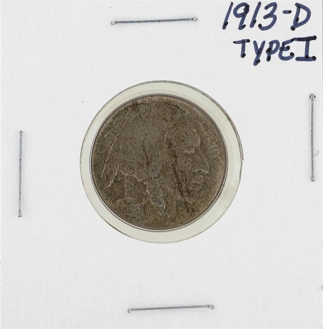 One 1913-D TYPE I Buffalo Nickel Coin.