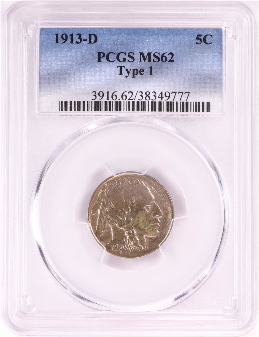 One 1913-D Type 1 Buffalo Nickel Coin PCGS MS62. PCGS Graded.