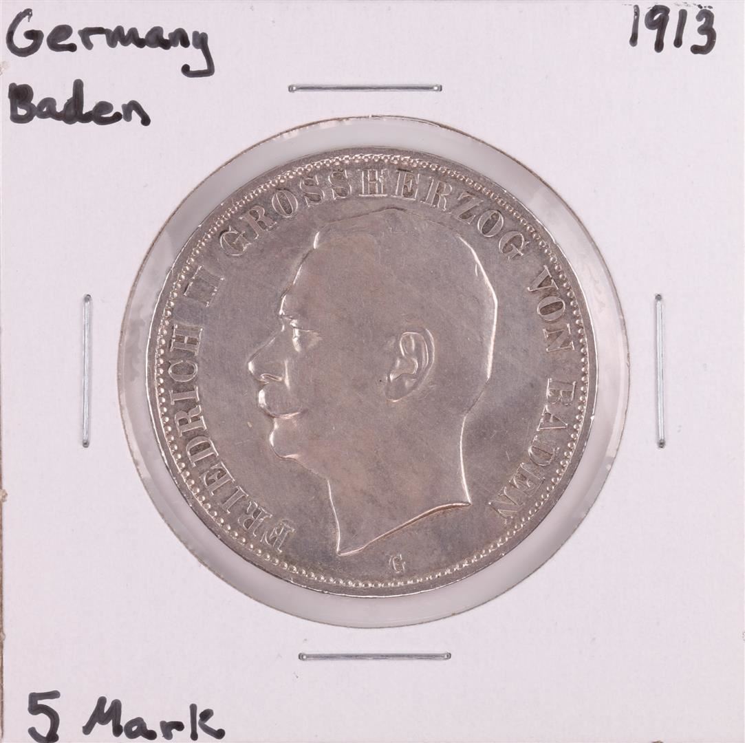 One 1913 Germany Baden 5 Mark Silver Coin.