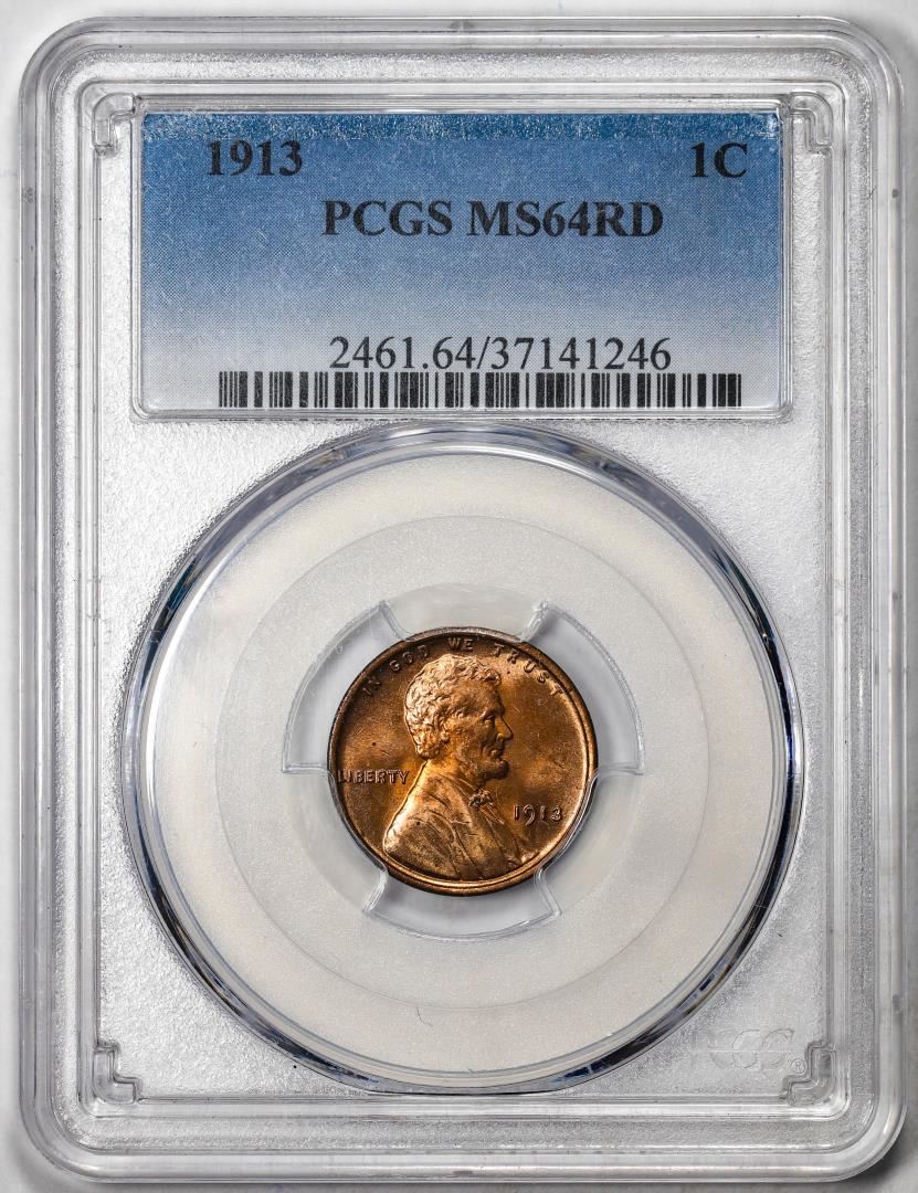 One 1913 Lincoln Wheat Cent Coin PCGS MS64RD. PCGS Graded.