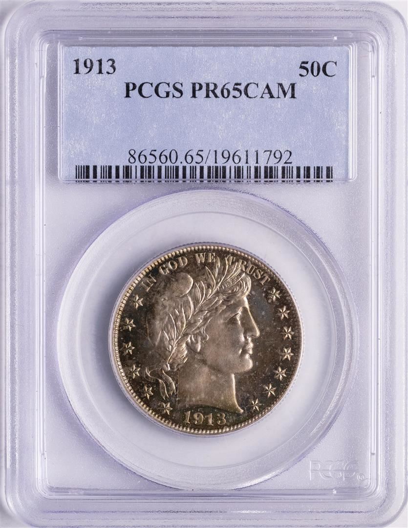 One 1913 Proof Barber Half Dollar Coin PCGS PR65CAM. PCGS Graded.
