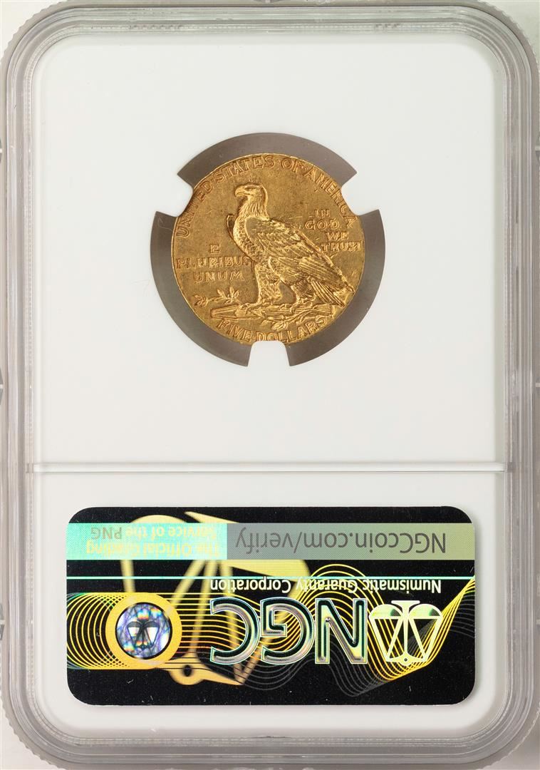 One 1913-S $5 Indian Head Half Eagle Gold Coin NGC AU58. NGC Certified.