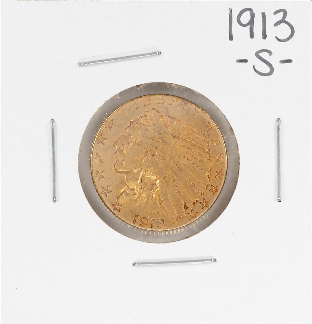 One 1913-S $5 Indian Head Half Eagle Gold Coin.
