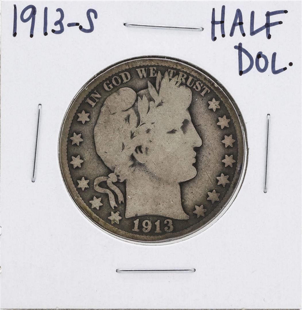 One 1913-S Barber Half Dollar Coin.