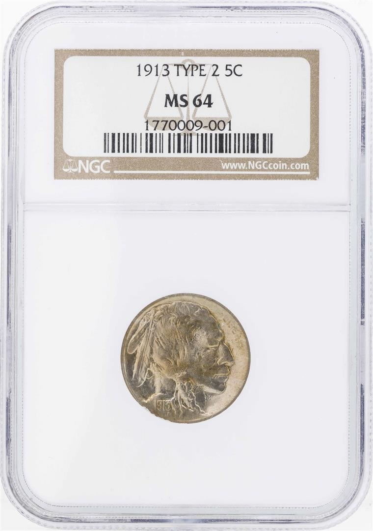 1913 Type 2 Buffalo Nickel Coin NGC MS64