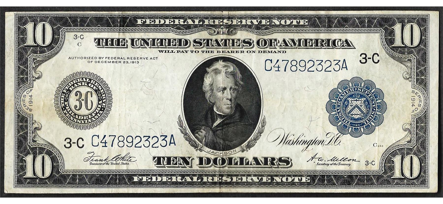 1914 $10 Federal Reserve Bank Note Philadelphia