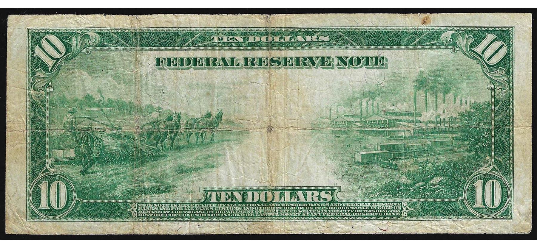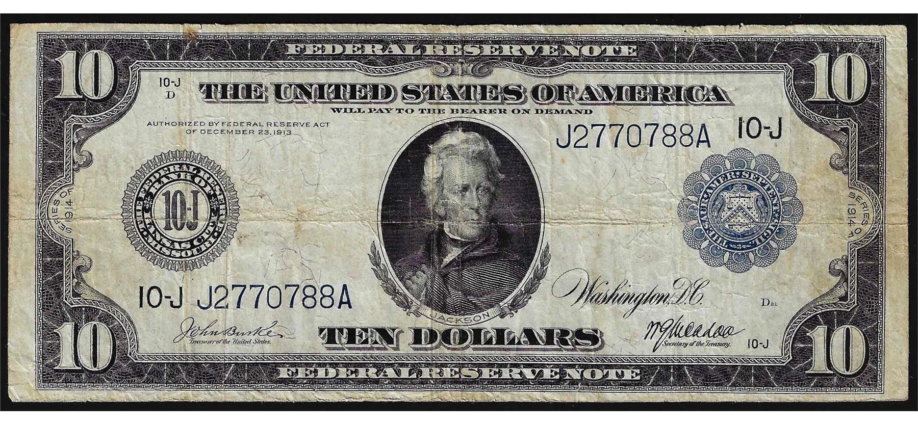 One 1914 $10 Federal Reserve Note Blue Seal.