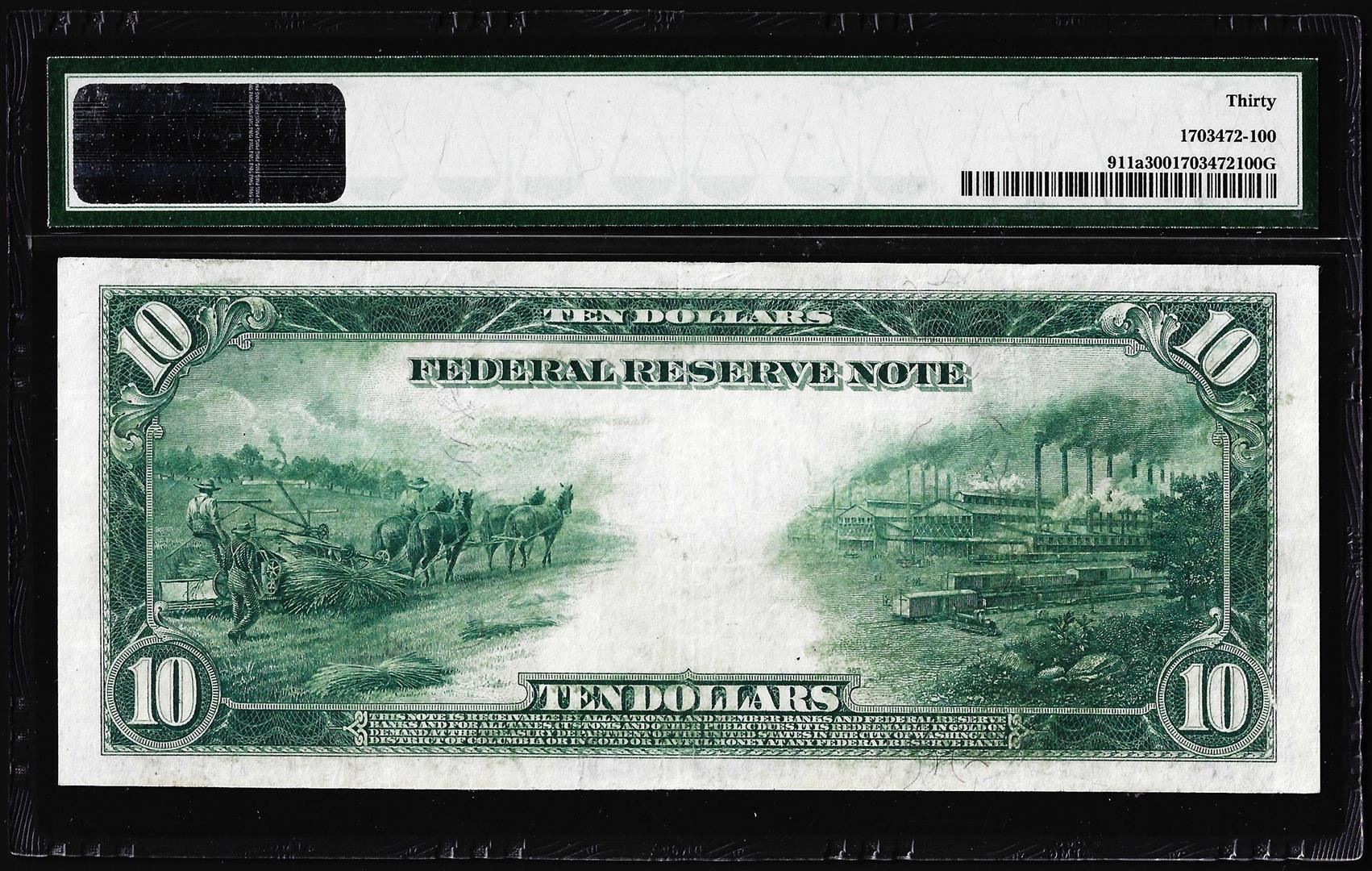 1914 $10 Federal Reserve Note New York Fr.911a PMG Very Fine 30