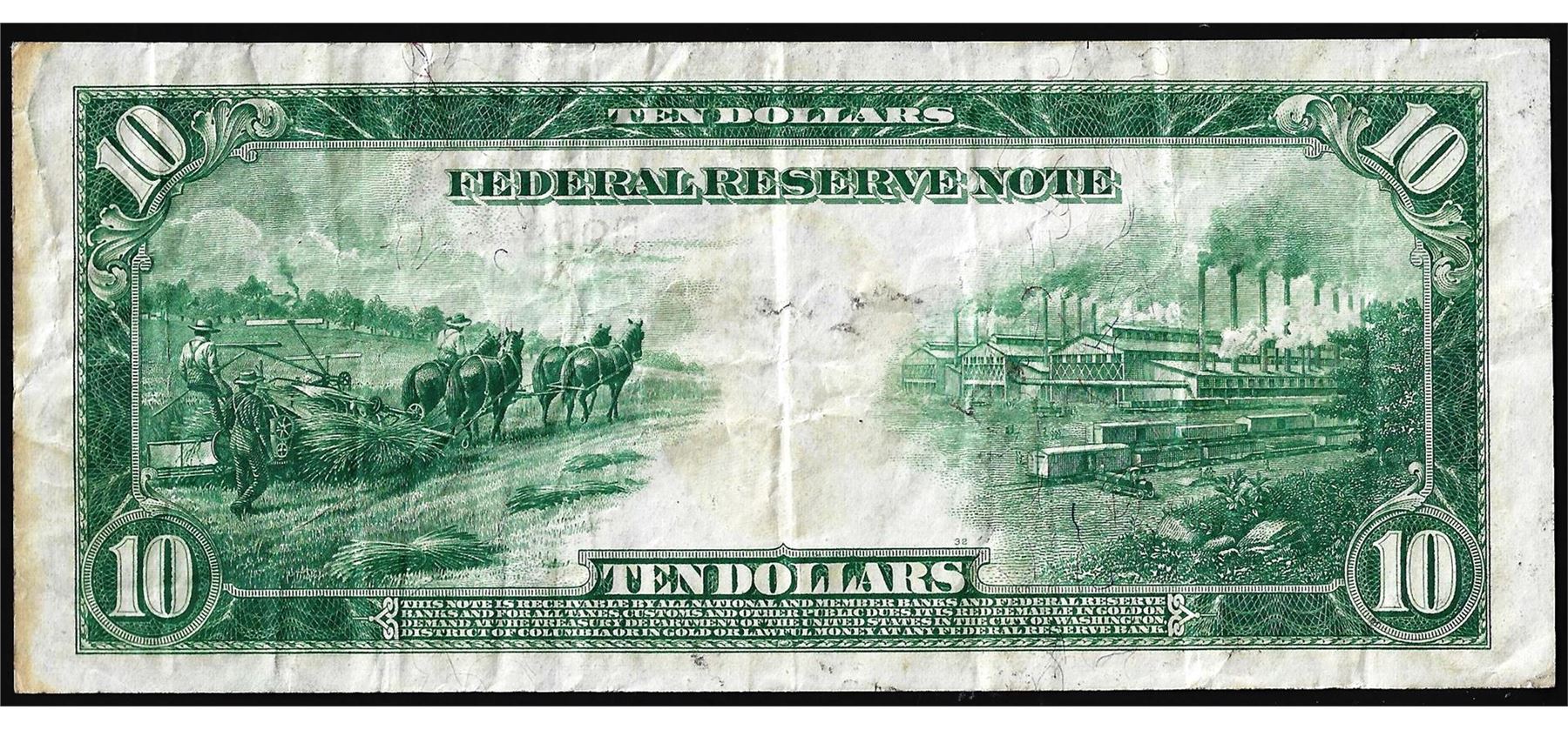 One 1914 $10 Federal Reserve Note New York Red Seal.