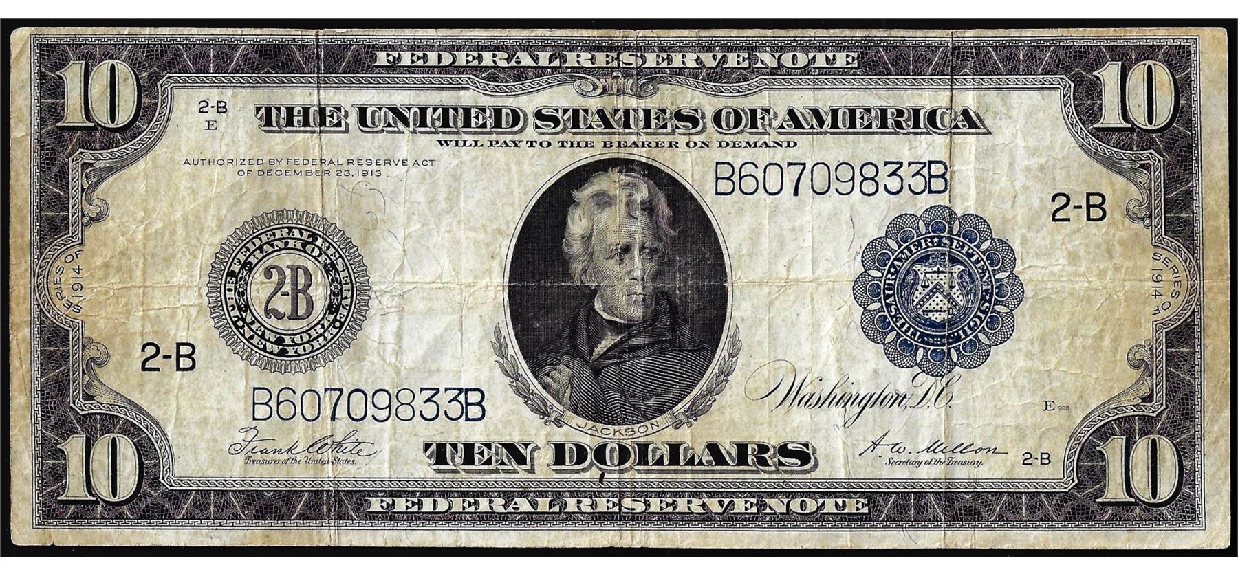 One 1914 $10 Federal Reserve Note New York.