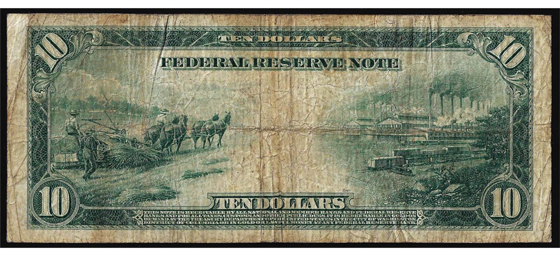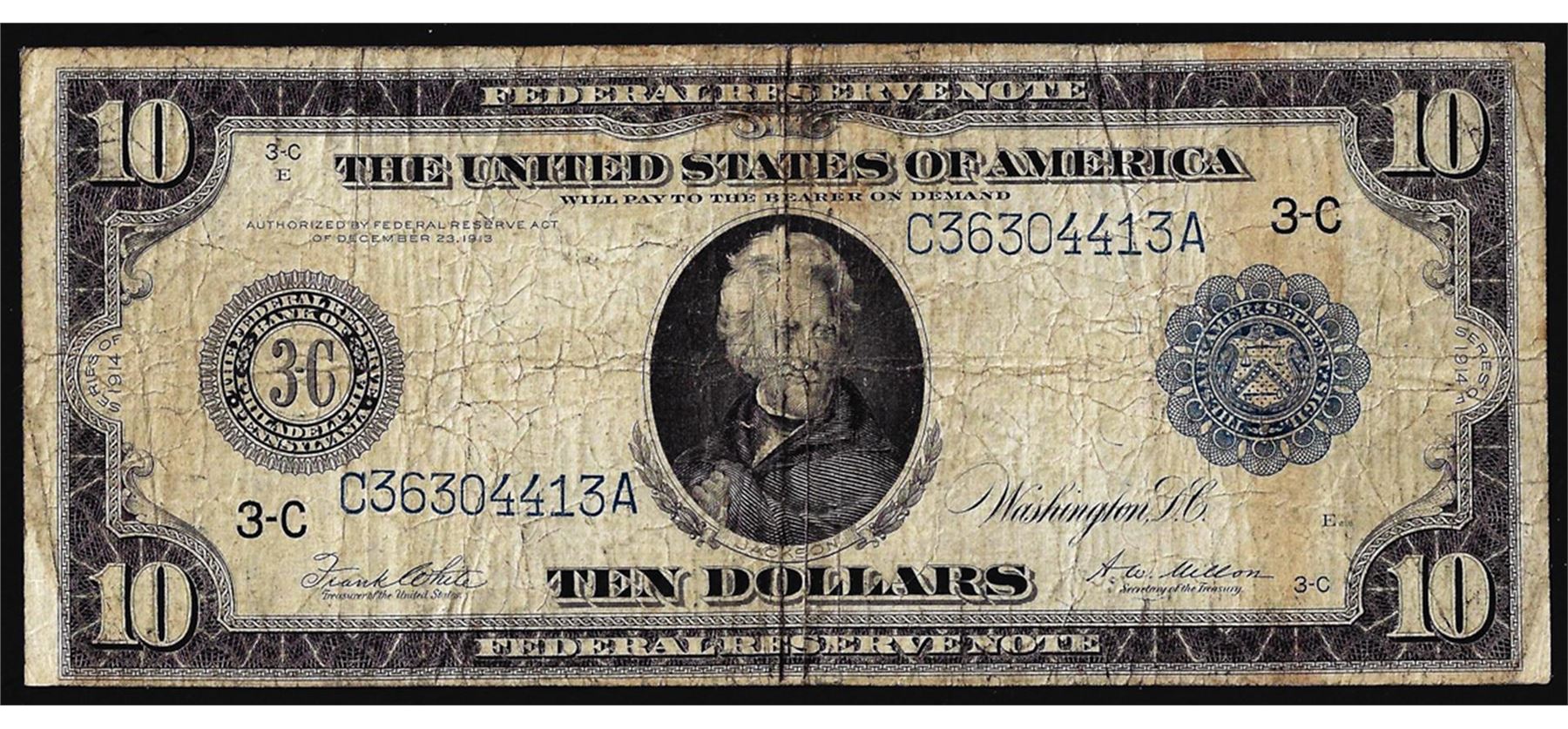 One 1914 $10 Federal Reserve Note Philadelphia.