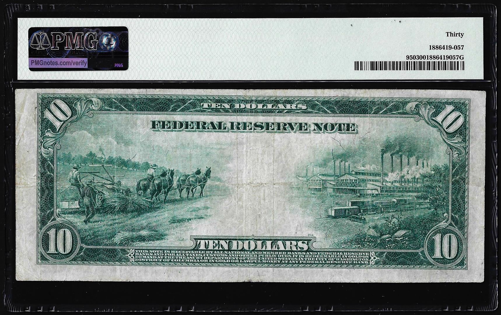 1914 $10 Federal Reserve Note San Francisco Fr.950 PMG Very Fine 30