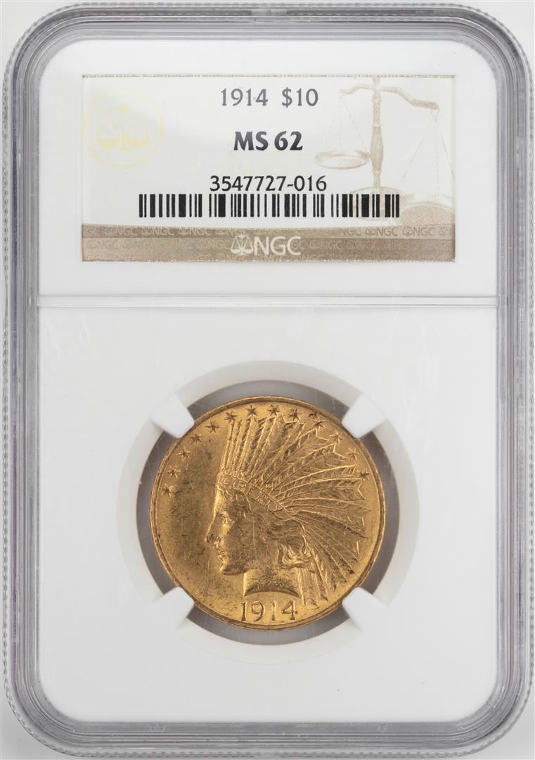 One 1914 $10 Indian Head Eagle Gold Coin NGC MS62. NGC Certified.