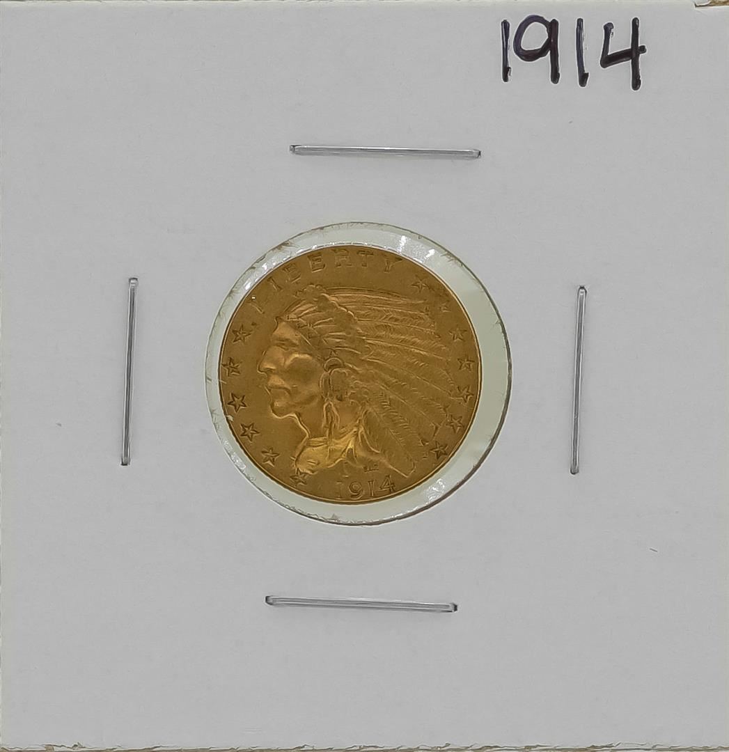 One 1914 $2 1/2 Indian Head Quarter Eagle Gold Coin.