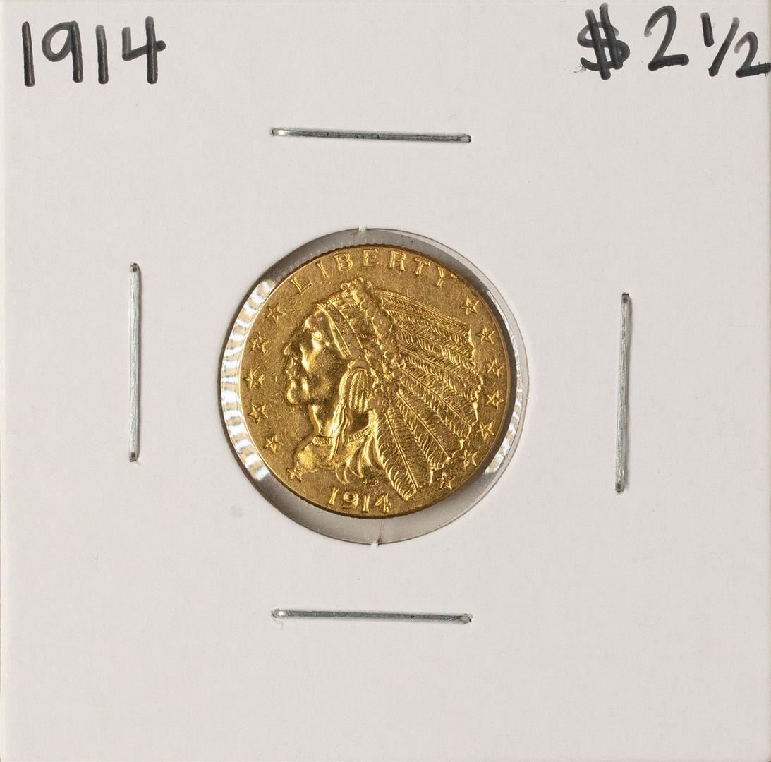 One 1914 $2 1/2 Indian Head Quarter Eagle Gold Coin.