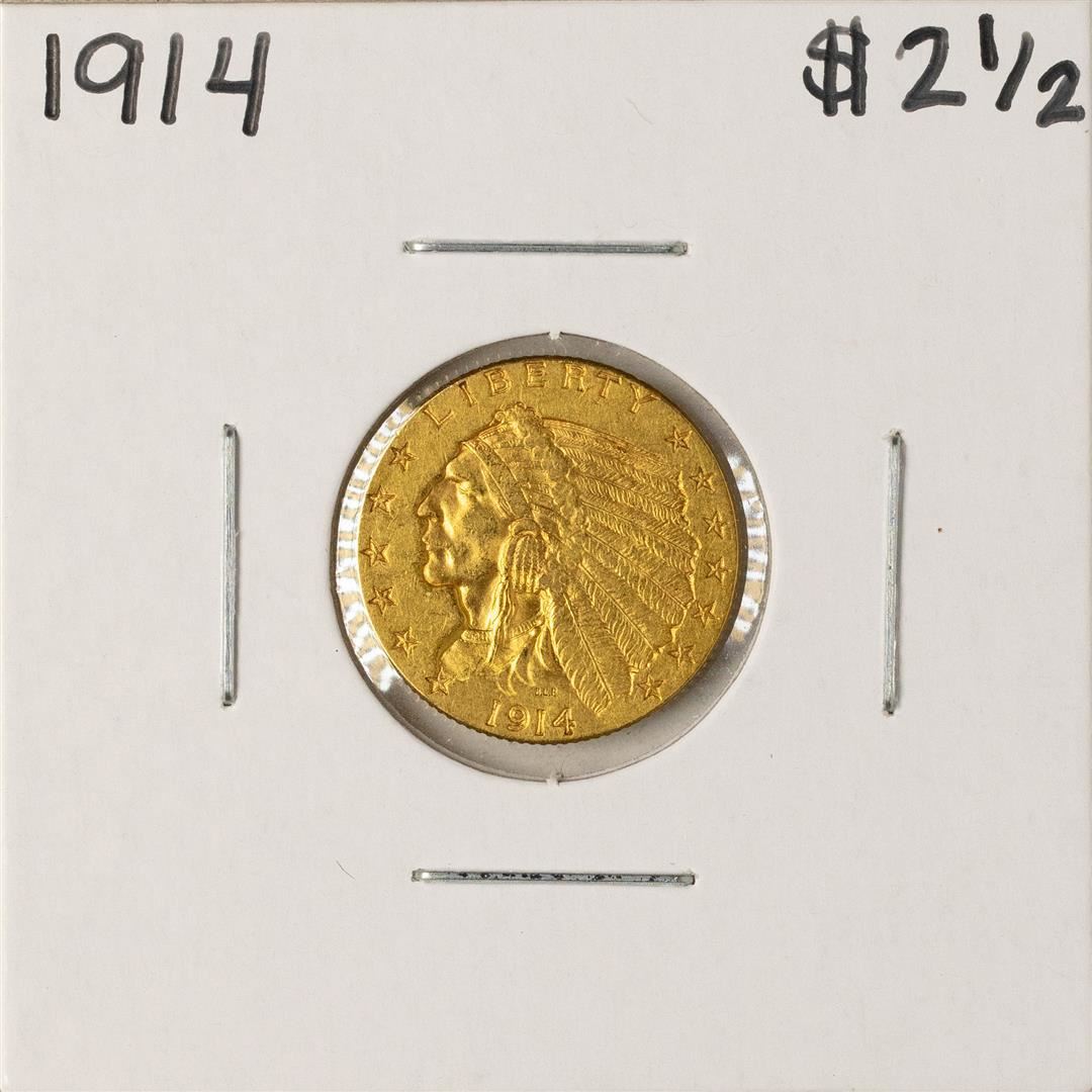 One 1914 $2 1/2 Indian Head Quarter Eagle Gold Coin.
