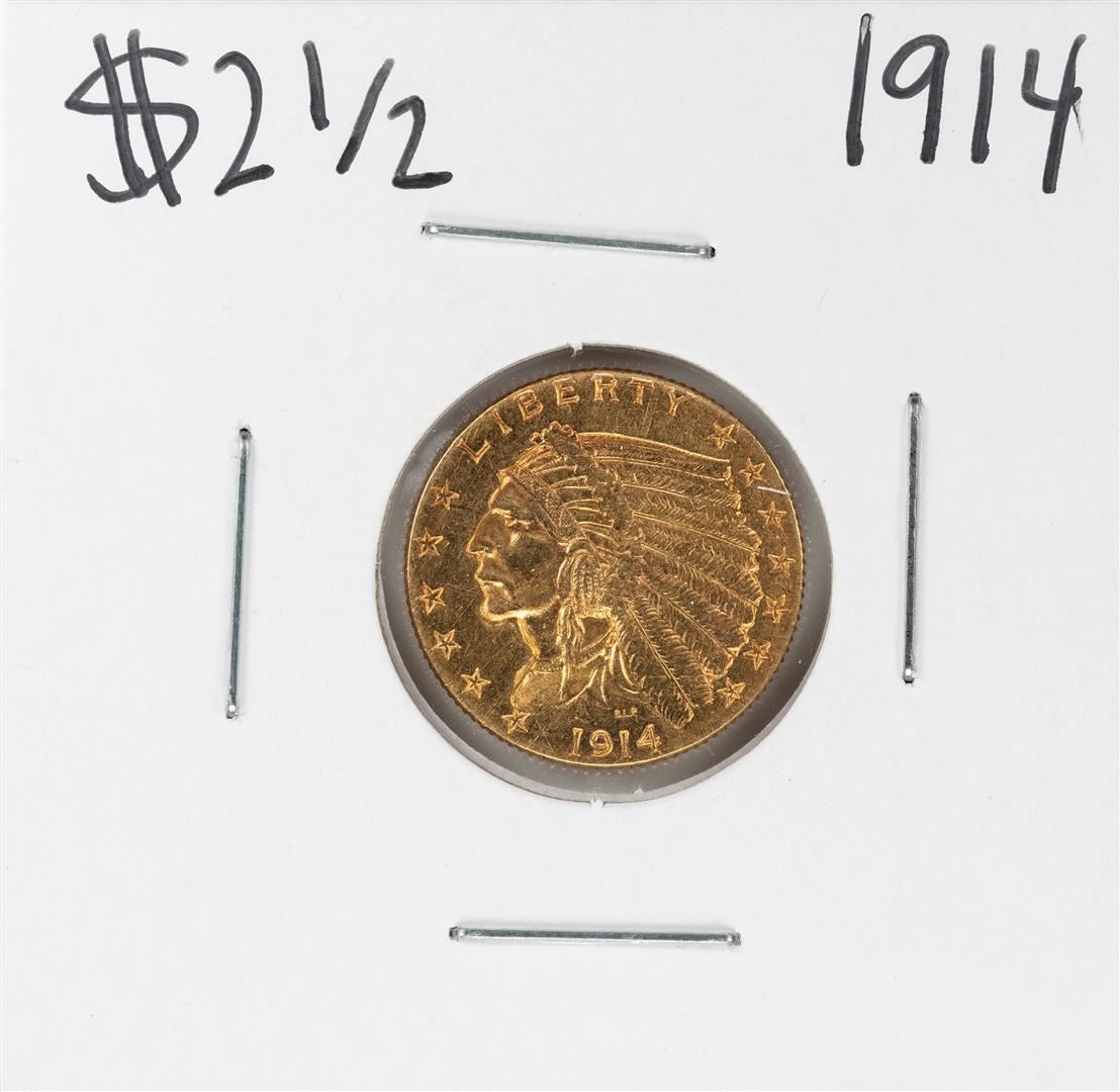 One 1914 $2 1/2 Indian Head Quarter Eagle Gold Coin.