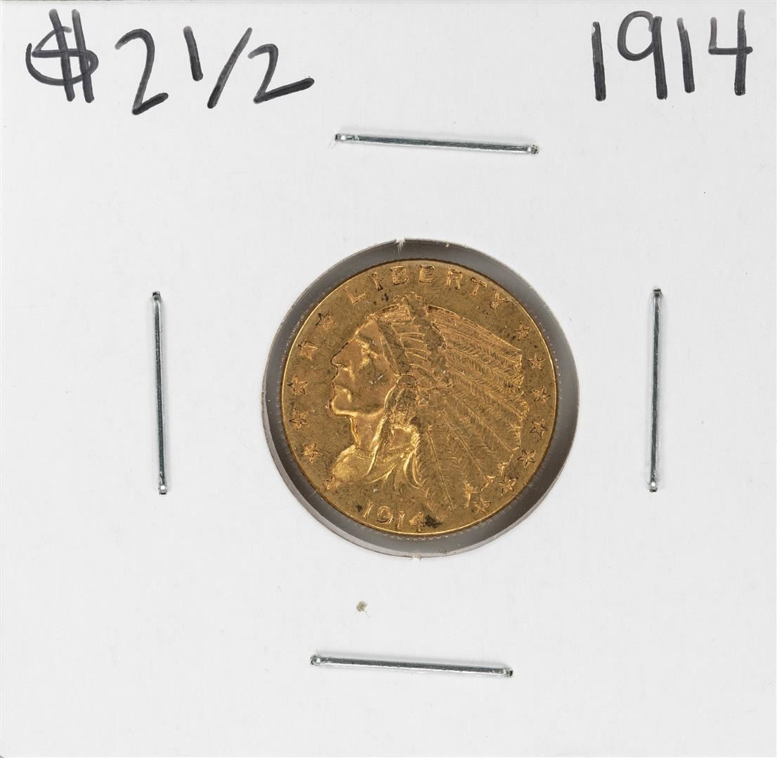 One 1914 $2 1/2 Indian Head Quarter Eagle Gold Coin.